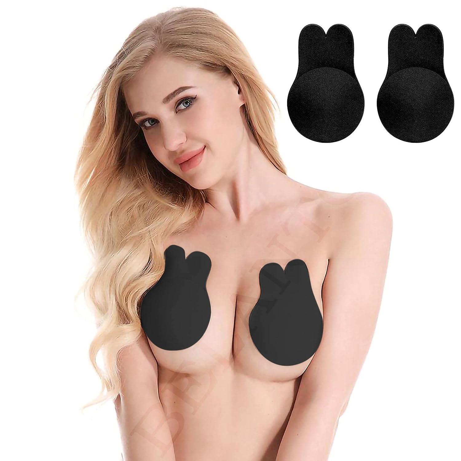 Brachy Black Sticky Adhesive Silicone Invisible Push Up Backless Strapless Nipple Cover Bra