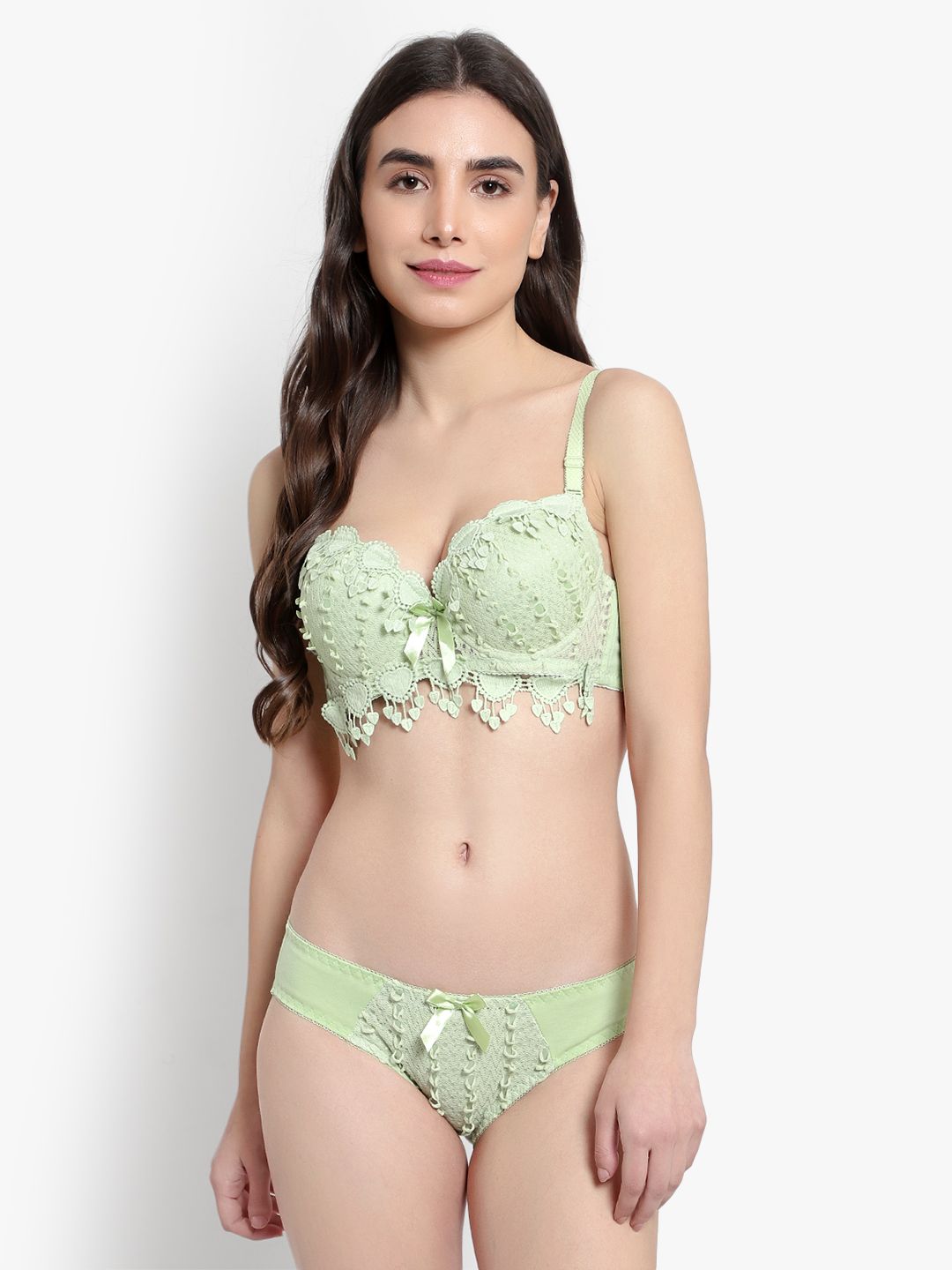 Brachy Women Colorblocked Padded Wired Push Up Bra with Sexy Seamless Panty Lingerie Set