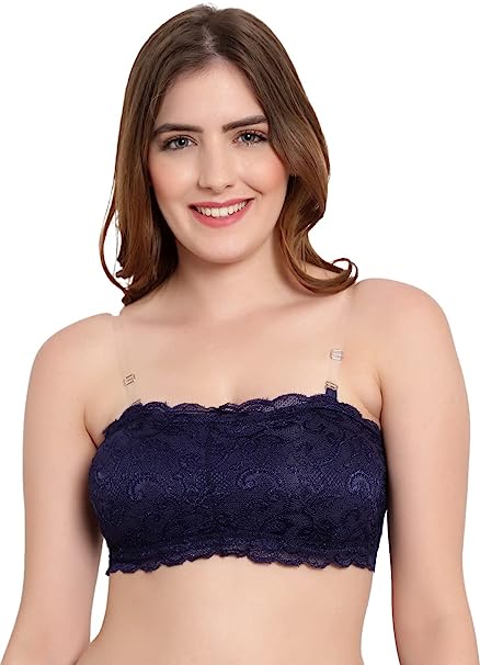 Women Lace Full Coverage Padded Non-Wired Tube Bandeau Bra