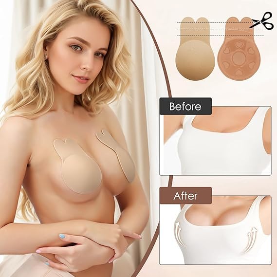 Brachy Women Pack Of 2 Sticky Adhesive Silicone Invisible Push Up Backless Strapless Nipple Cover Bra