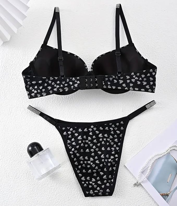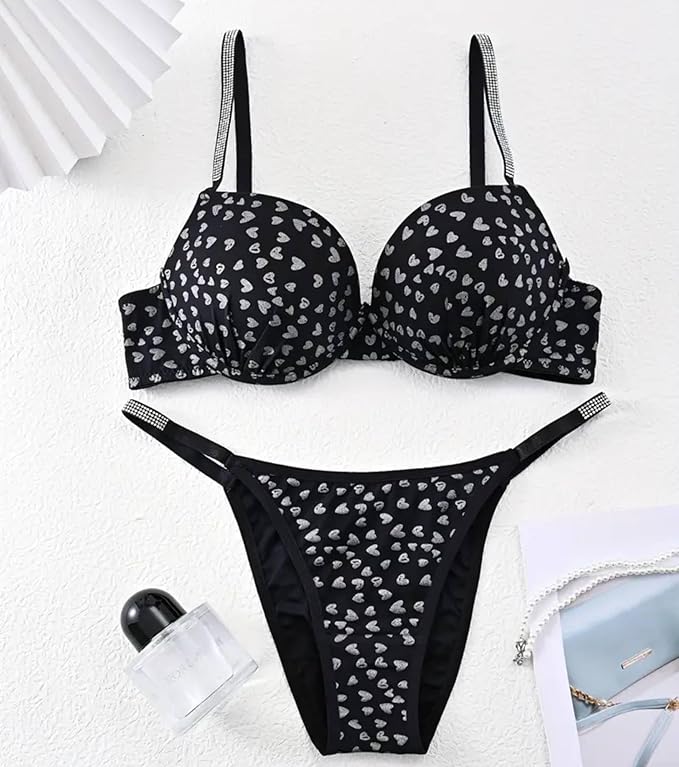 Brachy Women Printed Padded Wired Push Up Bra with Sexy Shine Seamless Panty Lingerie Set