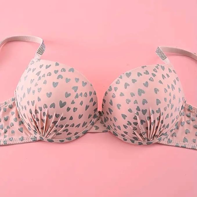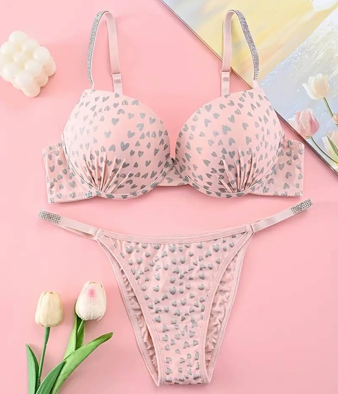 Brachy Women Printed Padded Wired Push Up Bra with Sexy Shine Seamless Panty Lingerie Set