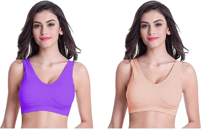 Pack Of 2 Womens Fashion Sports Bra | Seamless, Padded, Non-Wired Gym & Yoga Bra | High Support, Comfortable Everyday Bralette