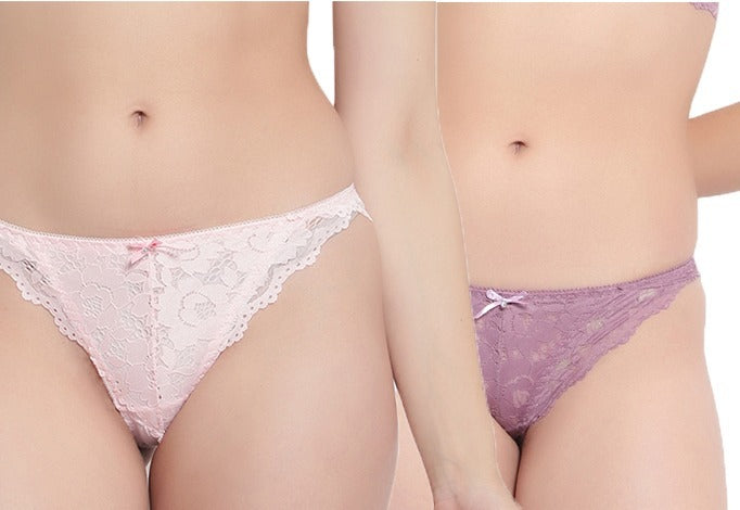 Set Of 2 Purple & Peach Mid-Rise Net Self Design Panties Bikini Briefs