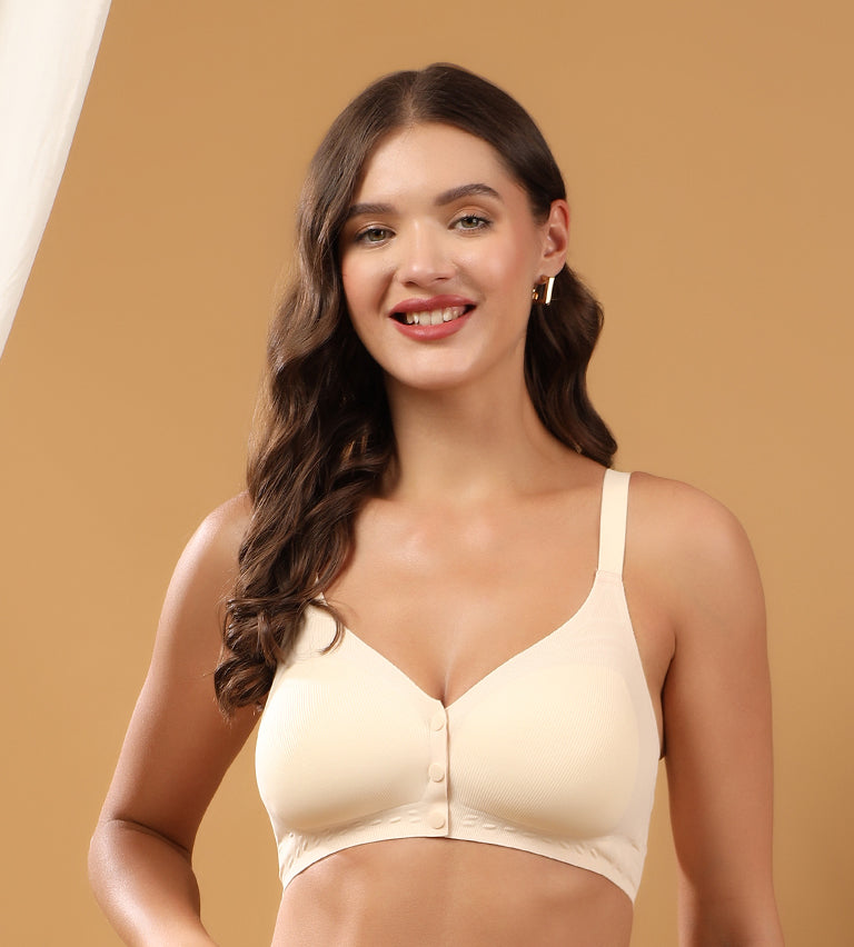 Women Beige Full Coverage Front Open Maternity Breastfeeding Bra