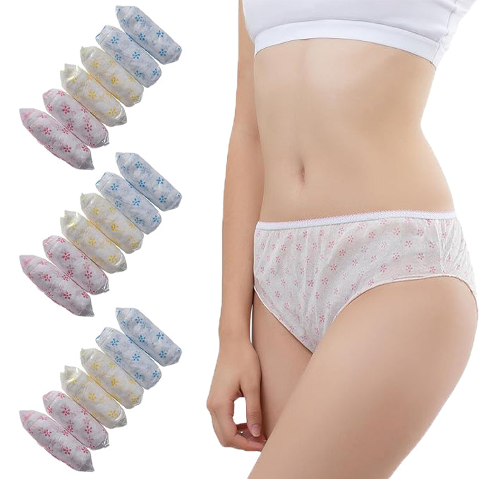 Women's Disposable Cotton Panties 's Pack of 18, designed for comfort and hygiene during body massage, surgeries, maternity, or periods. Made from soft, breathable cotton, these single-use panties ensure convenience and freshness in sensitive times. Ideal for travel, spa sessions, or hospital stays.