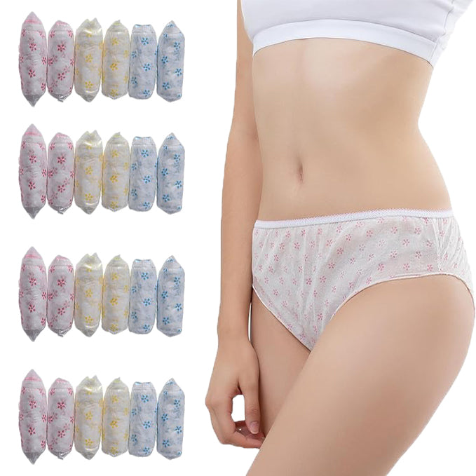 These women's disposable cotton panties are designed for ultimate hygiene and convenience during body massages, surgeries, maternity, or periods. Made from soft, breathable cotton, they come in a pack of 24 for single-use comfort and ease. Ideal for travel, hospital stays, or spa sessions.