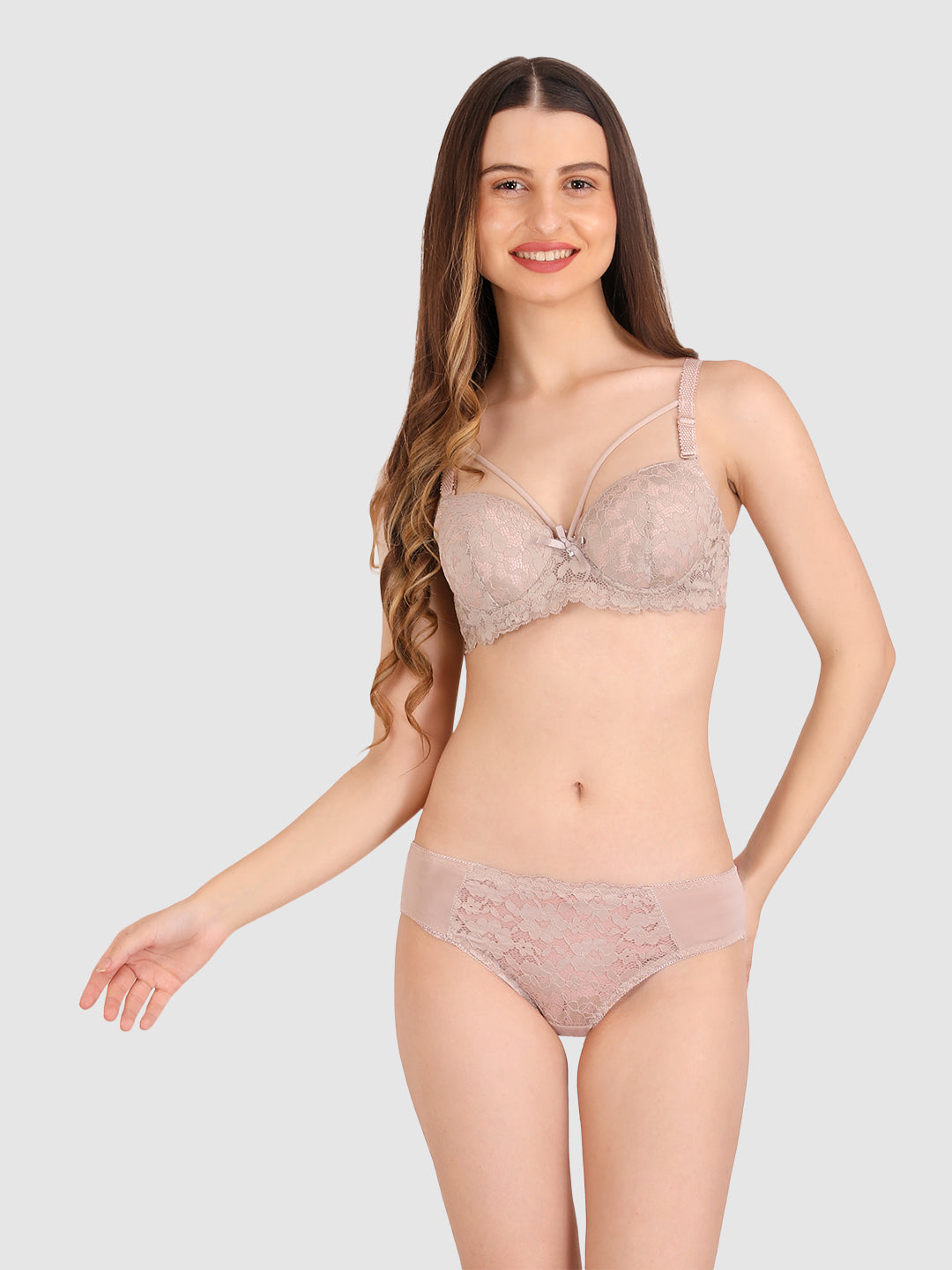 Bring home this ultra-soft Flower Lace Front V-Strip Design Underwired bra And Panty Set which has been meticulously designed to lend accurate definition to your bustline. Say goodbye to visible bra outlines when you wear it underneath your favorite attire.