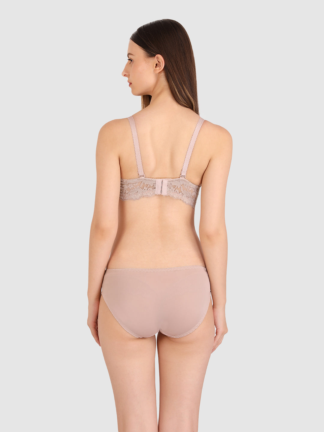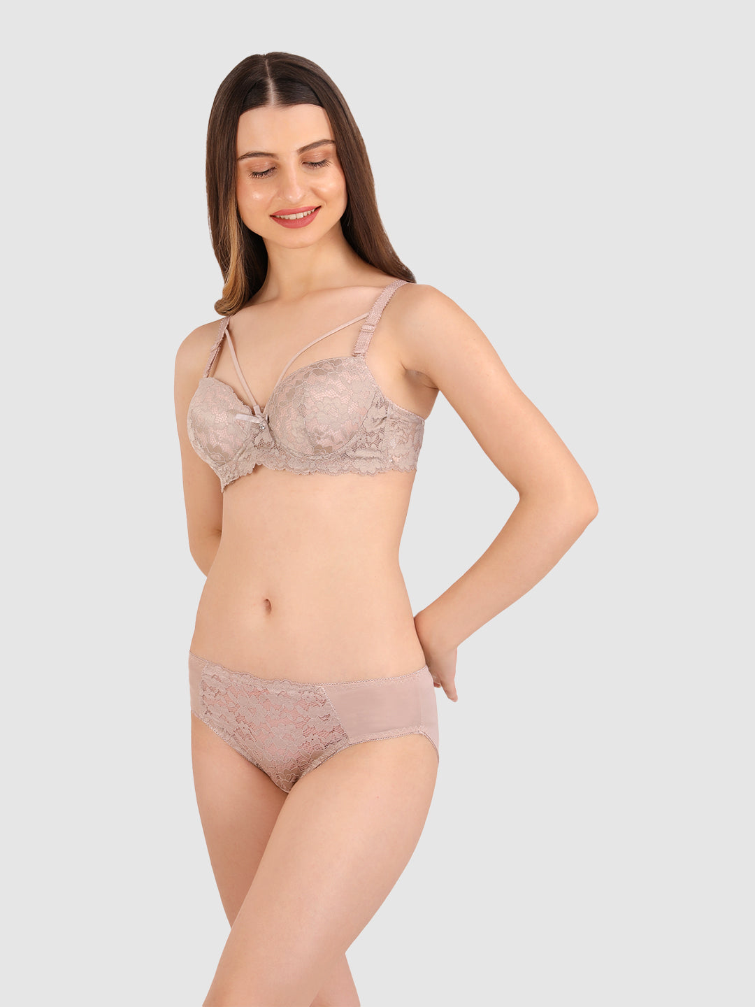 Women Mauve Lace Heavily Padded Push up Lingerie Set