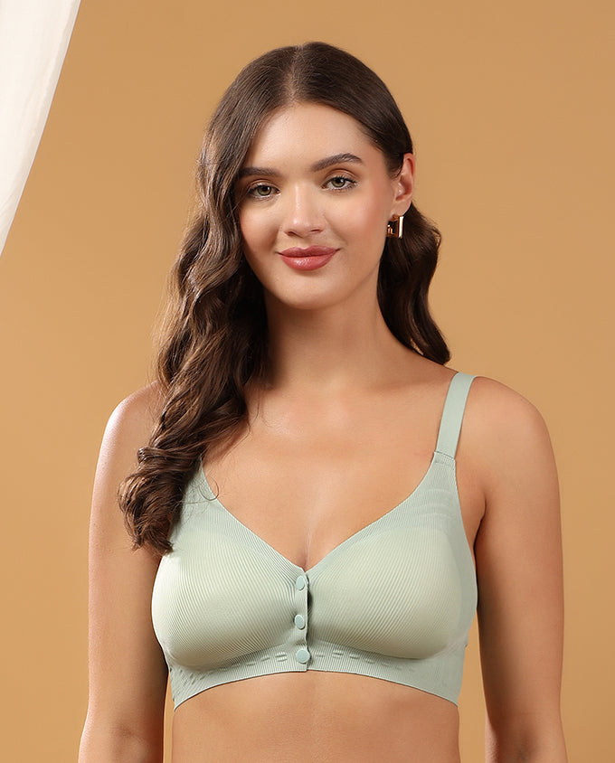 Women Mint Green Full Coverage Front Open Maternity Breastfeeding Bra