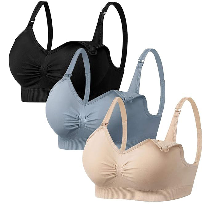 Women Organic Antimicrobial Soft Feeding Full Bust Seamless Nursing,Breastfeeding Maternity Bra with Remove Pads Pack of 3