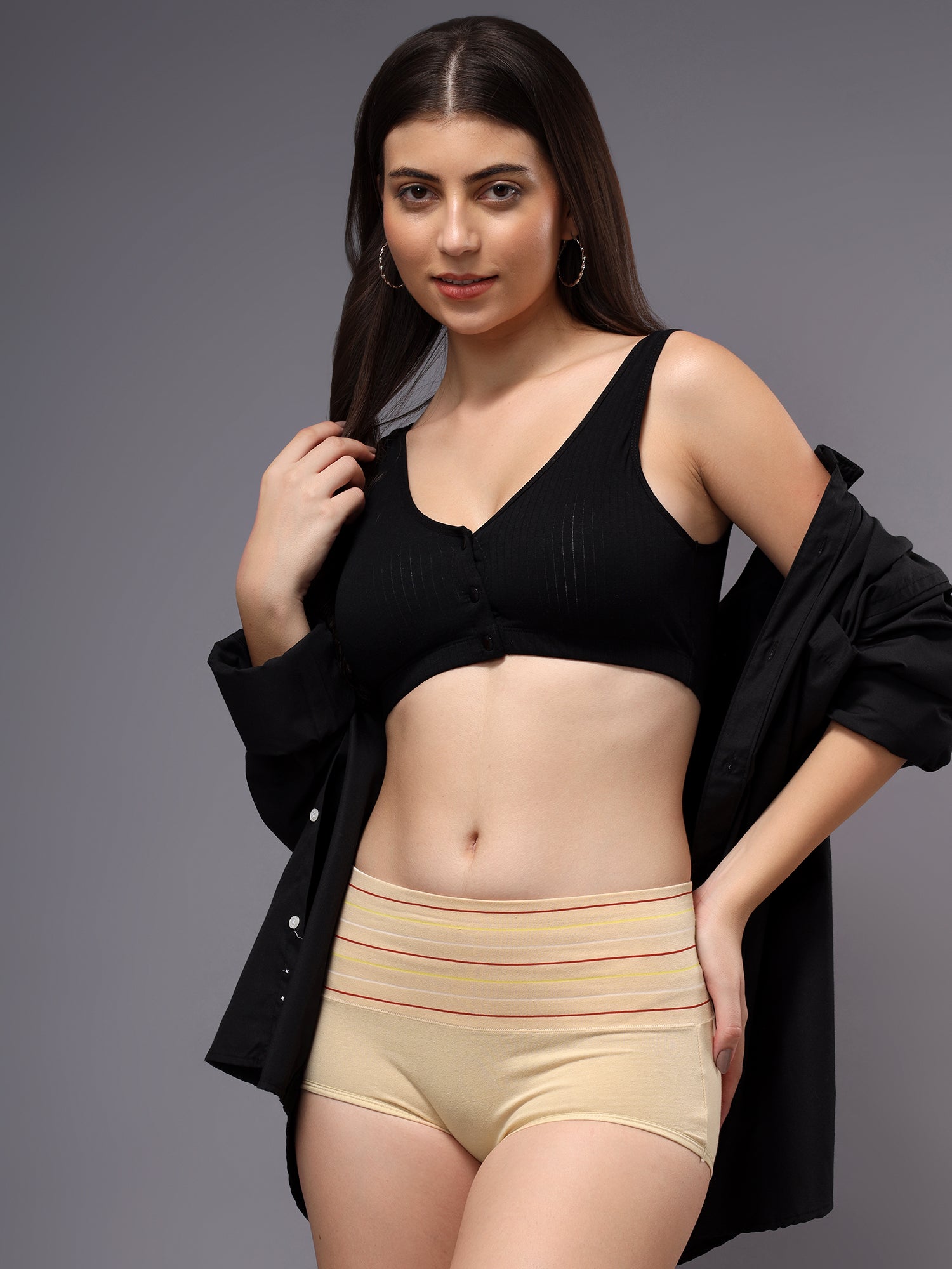 Women Striped Hipster Briefs High Waist Full Coverage Panty
