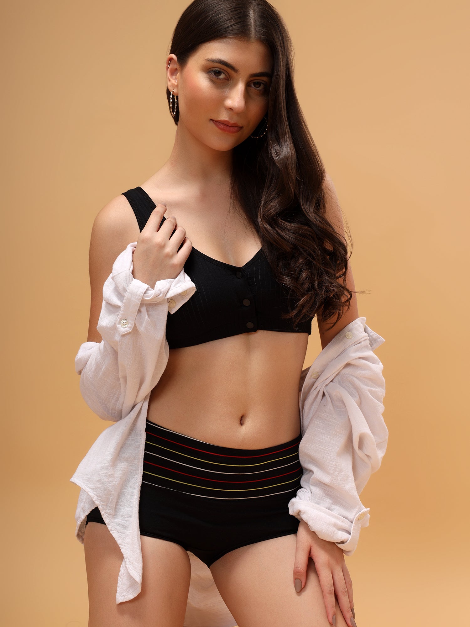 Women Striped Hipster Briefs High Waist Full Coverage Panty