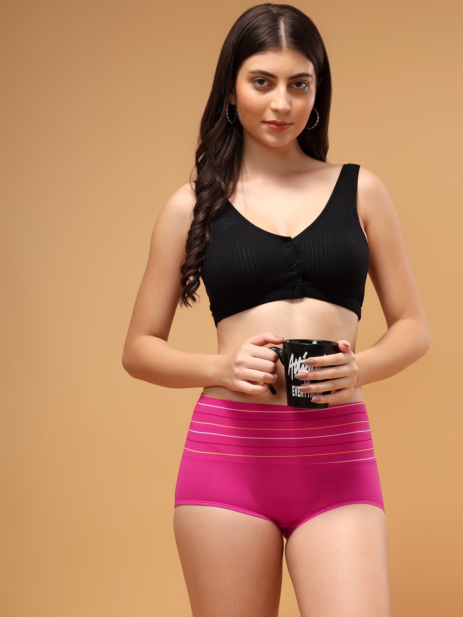 Women Striped Hipster Briefs High Waist Full Coverage Panty