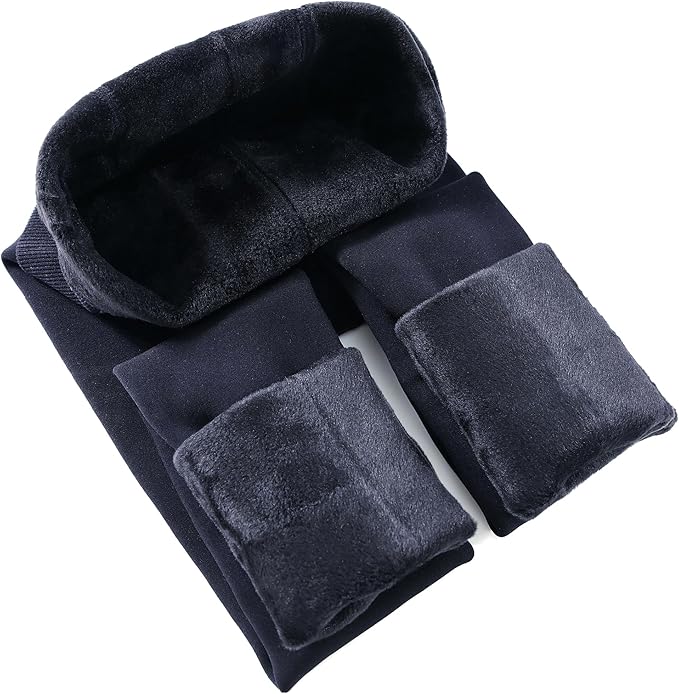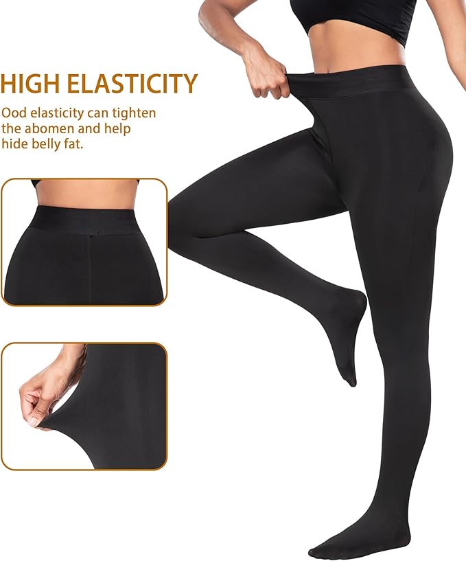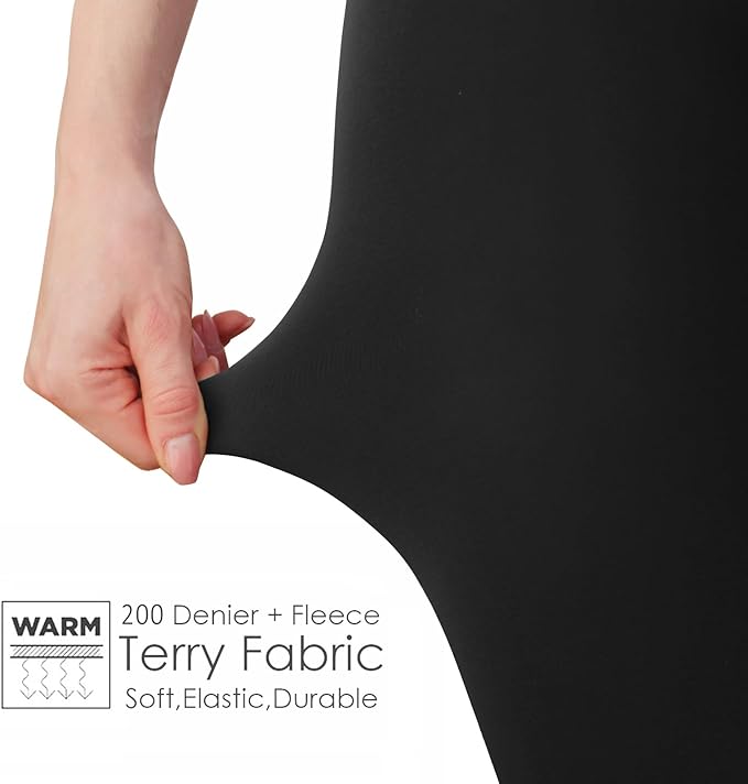 Women Black Solid Footed Warm Thick Fur Thermal Bottom Stockings
