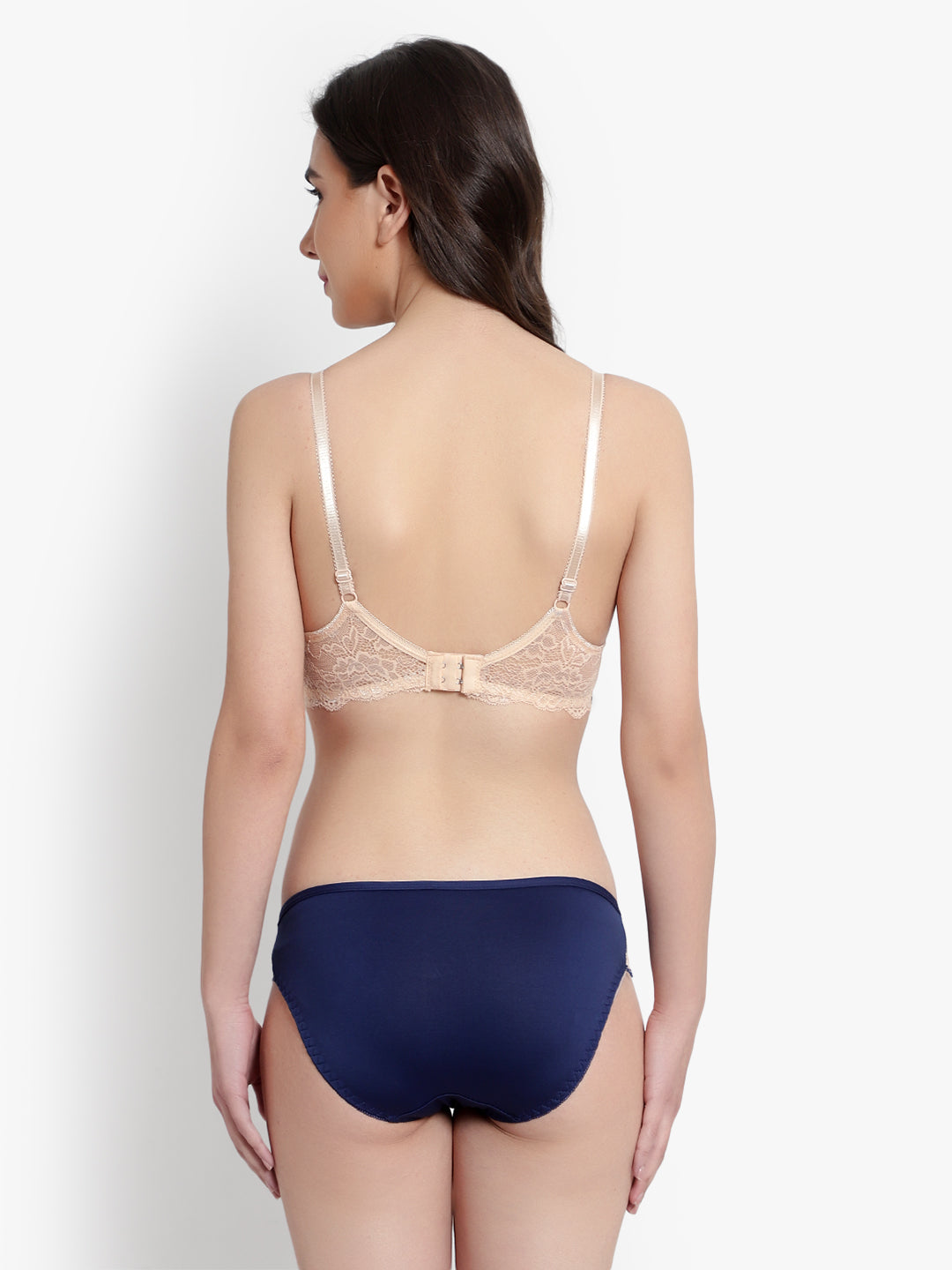 - Striking Blue Color: This eye-catching blue bra features a stylish self-design, adding a pop of color to your lingerie drawer.