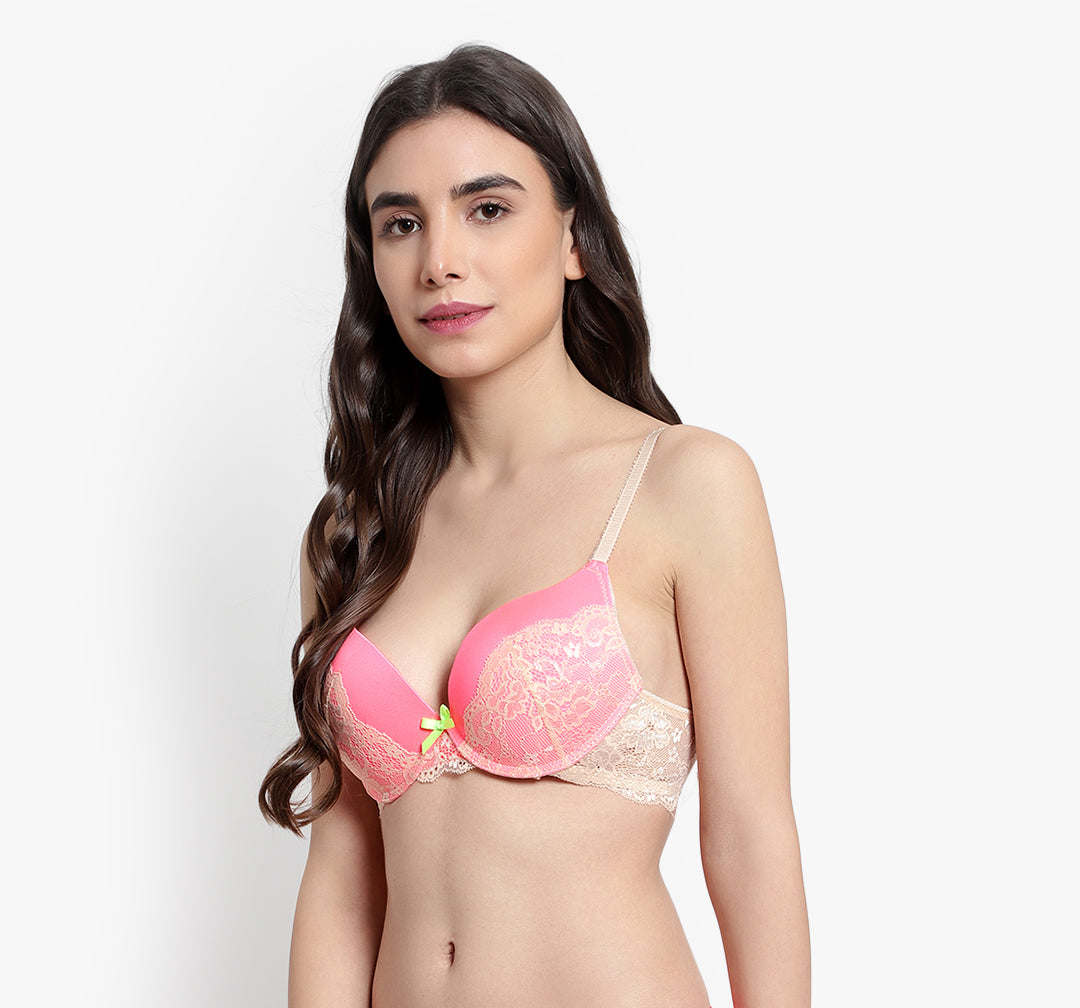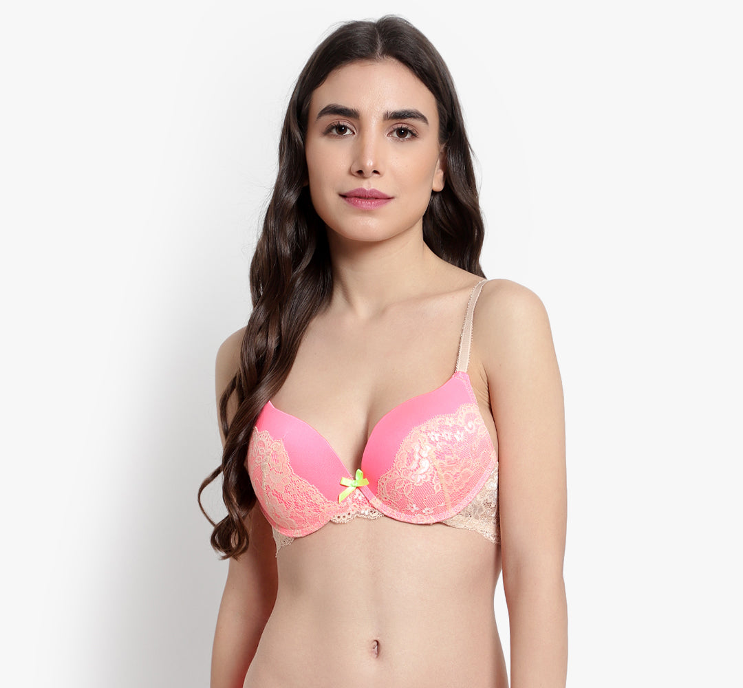 Women's Peach Self Design Underwired Heavily Padded Push-Up Plunge Bra