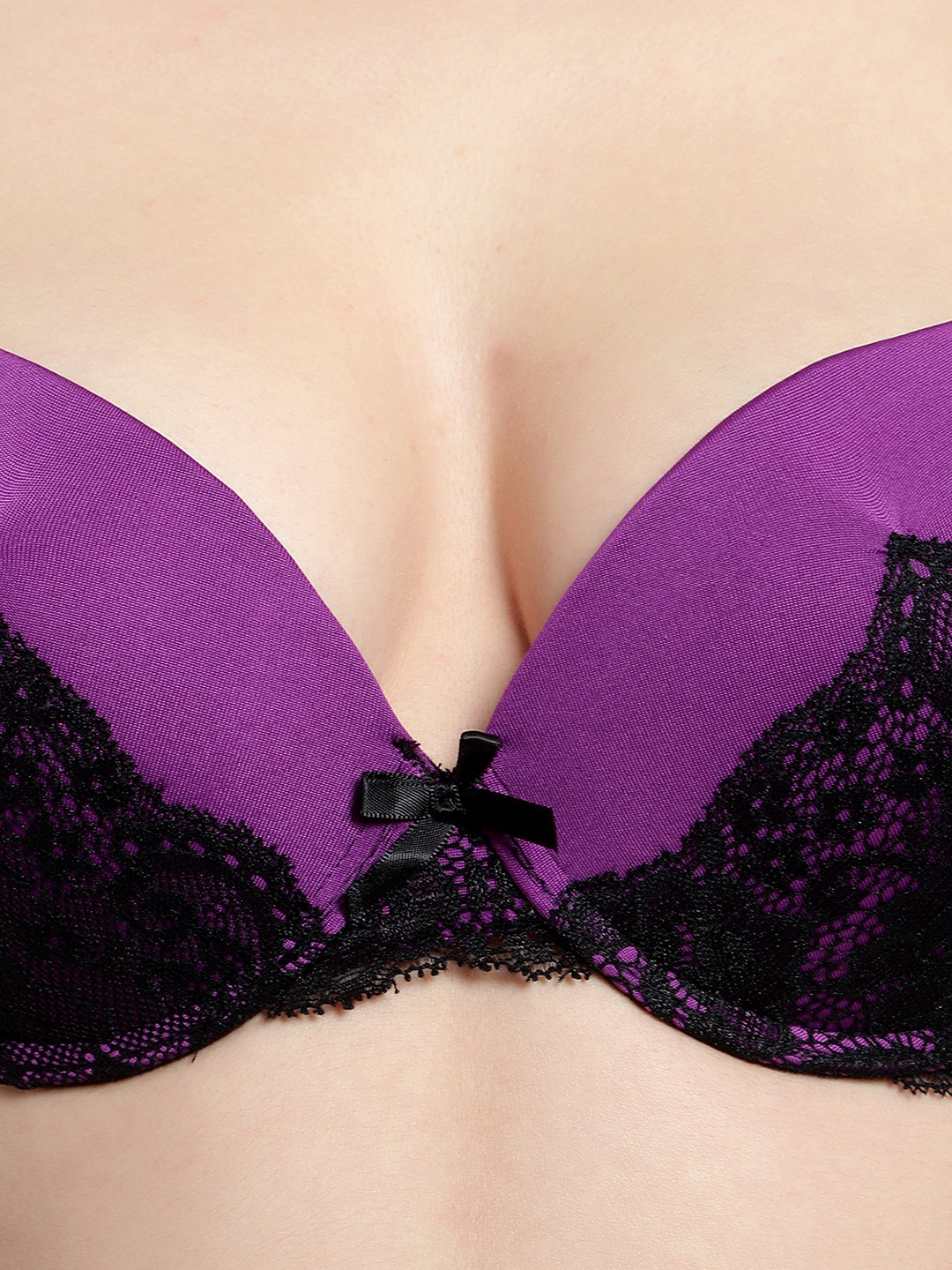 Women���������������������������s Purple Self Design Underwired Heavily Padded Push-Up Plunge Bra